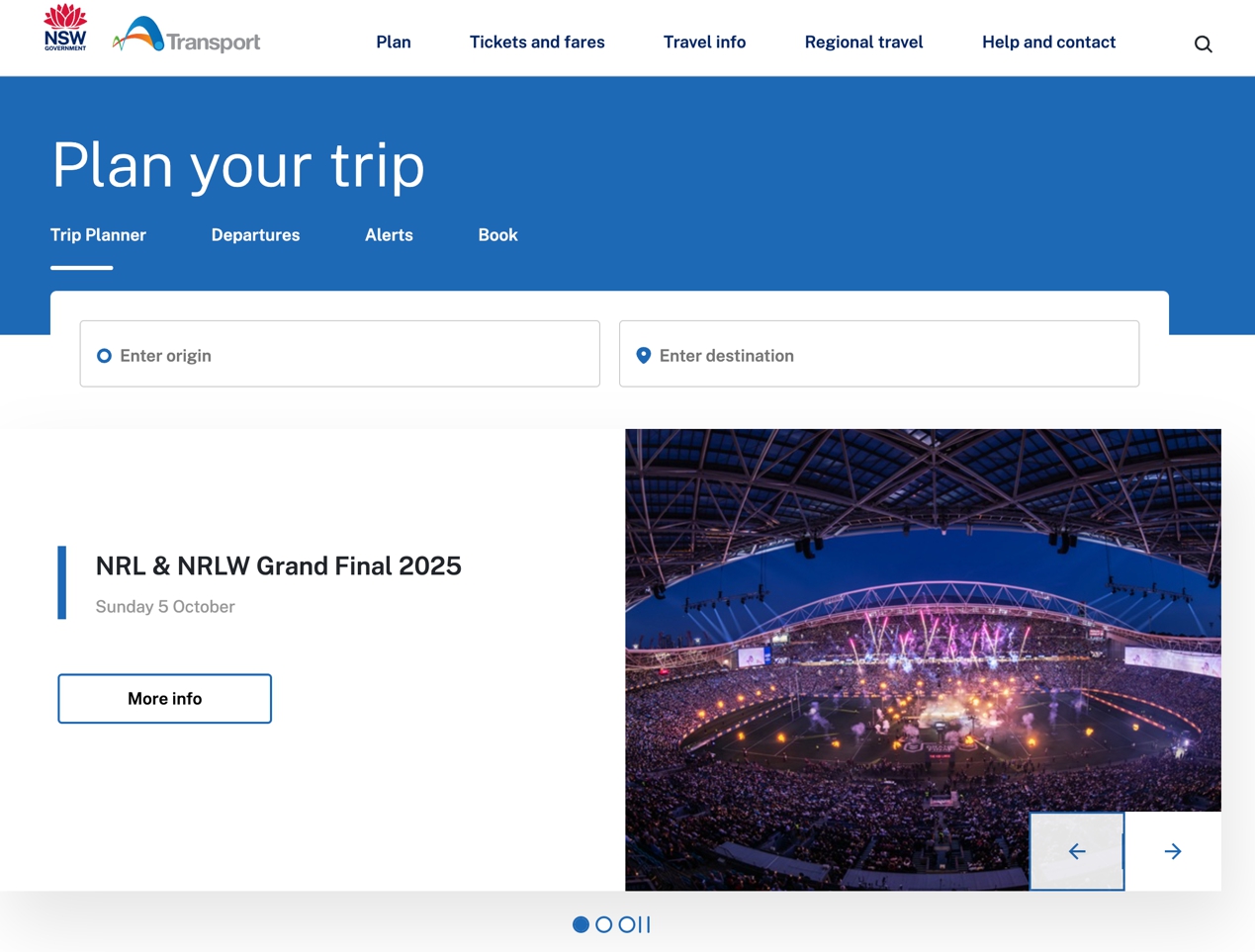 以新南威爾士州的官方交通信息平臺transportnsw.info為例,它承載著為數(shù)百萬居民和游客提供實(shí)時(shí)、準(zhǔn)確出行指南的重任。從公交、火車的時(shí)刻表到服務(wù)變更的緊急通知,每一條信息都直接影響著公眾的日常生活。